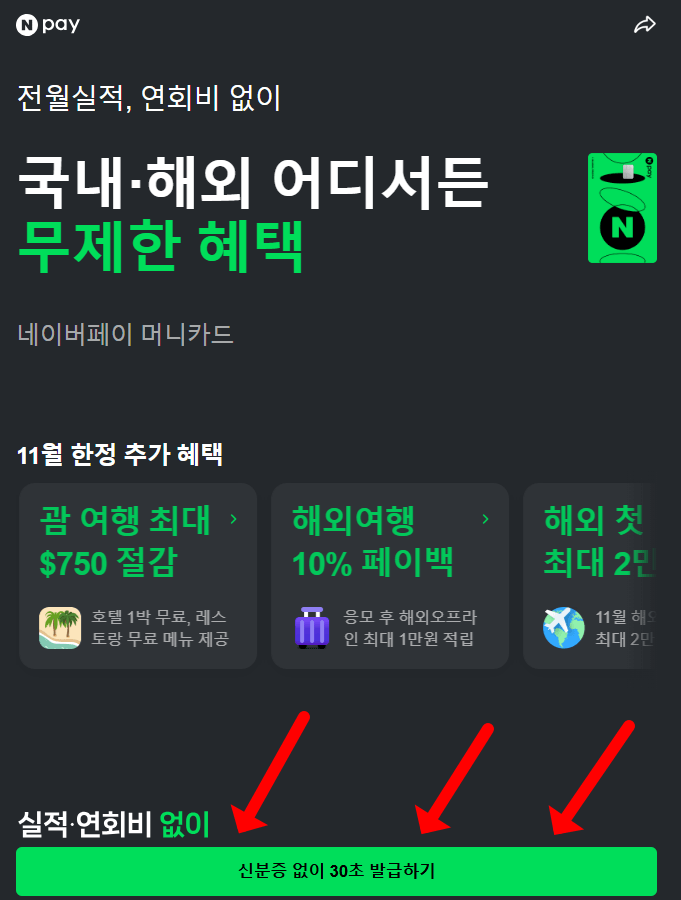 1. 네이버페이 머니카드 발급 홈페이지 접속