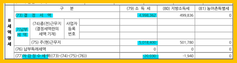 - 결정세액: 내가 내야 할 세금( 계산 과정을 두 번째 페이지에서 확인)