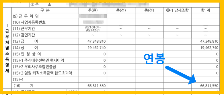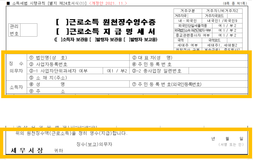 원천징수영수증 첫 번째 페이지에서 가장 중요한 부분입니다.
