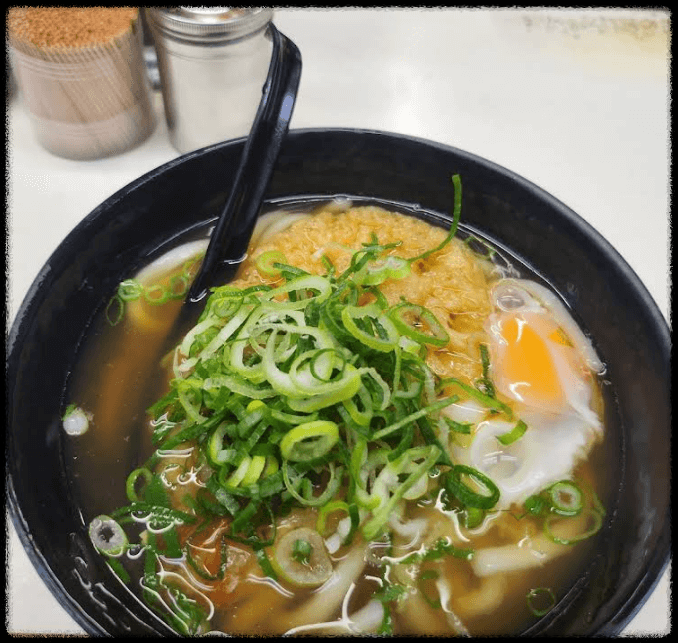- 키츠네 우동 (270엔~) – 유부가 듬뿍 올라간 가성비 메뉴