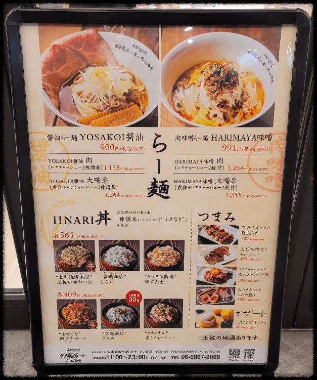 | 사카모토 료마가 사랑한 라면 식당 | 우메다 LINKS 1층 | 990~1,390엔 | ⭐ 4.1 |