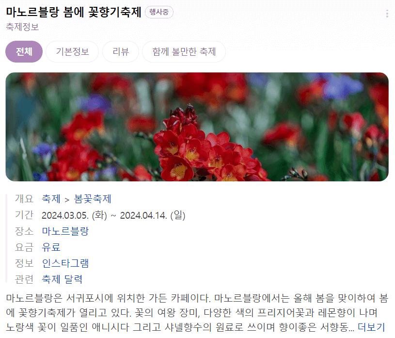 📍 세부정보 : 👉마노르블랑 봄에 꽃향기 축제 인스타그램 보러가기👈